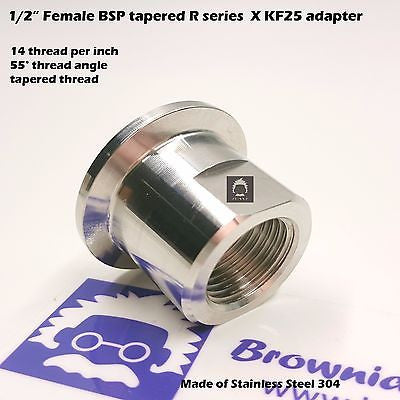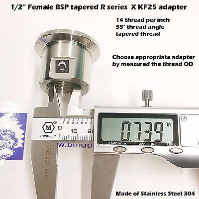 1/2" Female BSP R series x KF25 flange stainless steel vacuum adapter