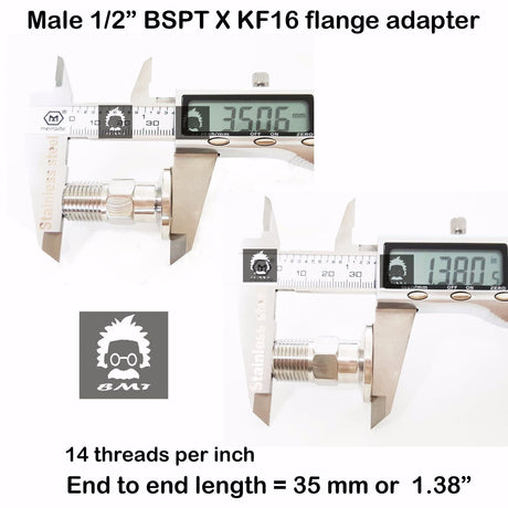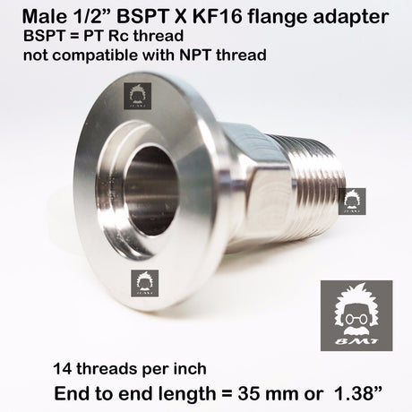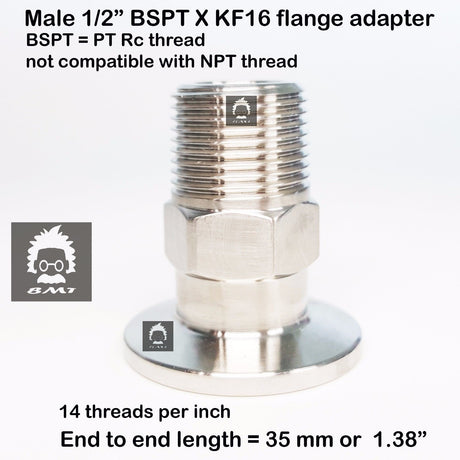 1/2" Male BSP tapered R serie X KF16 Flange stainless steel vacuum adapter
