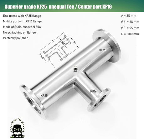 $42.90Unit price /UnavailableUnequal Tee, KF40 flange to KF25, SS304, Superior grade