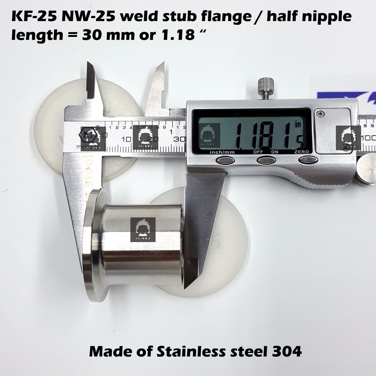 KF25 NW25 flange half nipple / weld stub flange length = 3 cm 1.18" is backordered and will ship as soon as it is back in stock.